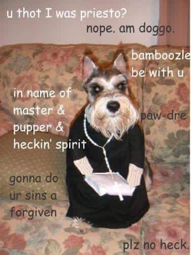 Update: Vinnie V. shared even more appropriate Nunsensey pupperness to the Bork Bork I Am Doggo page!!