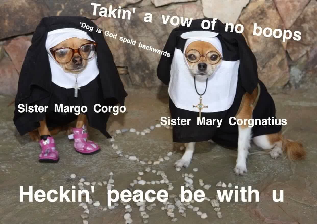 Update: Vinnie V. shared even more appropriate Nunsensey pupperness to the Bork Bork I Am Doggo page!!