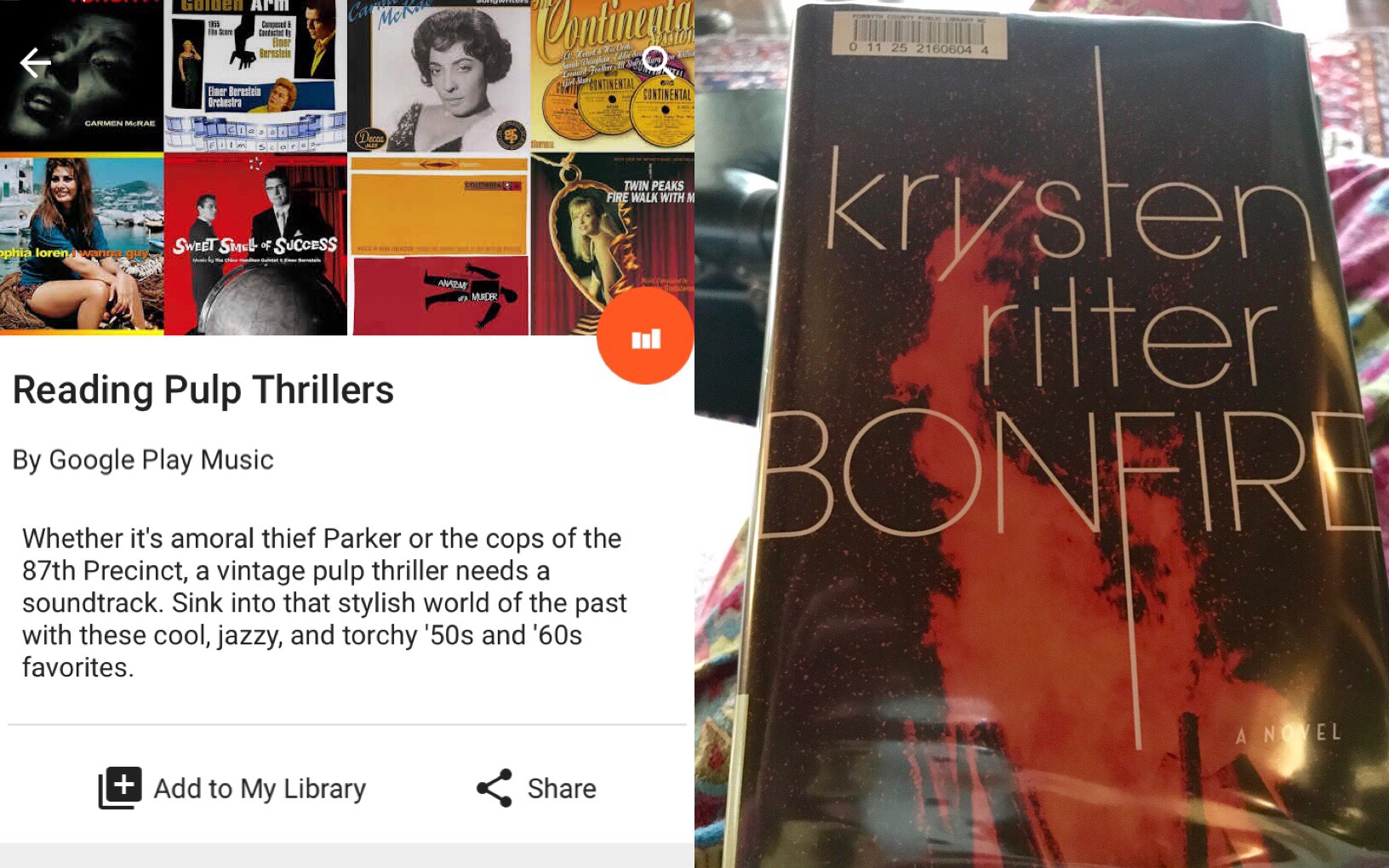 The corgimutts were so excited about traveling, they Would Not Sleep Wednesday night. Eventually, I gave up, and started Thanksgiving Day off early on the couch. Truthfully, it wasn’t a huge sacrifice, because I had a book I was dying to start! Bonfire is a thriller by Krysten Ritter, a fellow native Pennsylvanian whose acting work I greatly enjoy in Don’t Trust the B in Apartment 23 and as Jessica Jones. My hold at the library came in just in time for the holiday — although as I approached the doors a few minutes before they closed on Wednesday, the security card tried to discourage me from entering. Silly security guard; never underestimate a wannabe librarian when new books are on the line! I was in and out in less than a minute. Guess that MLS is good for something (;