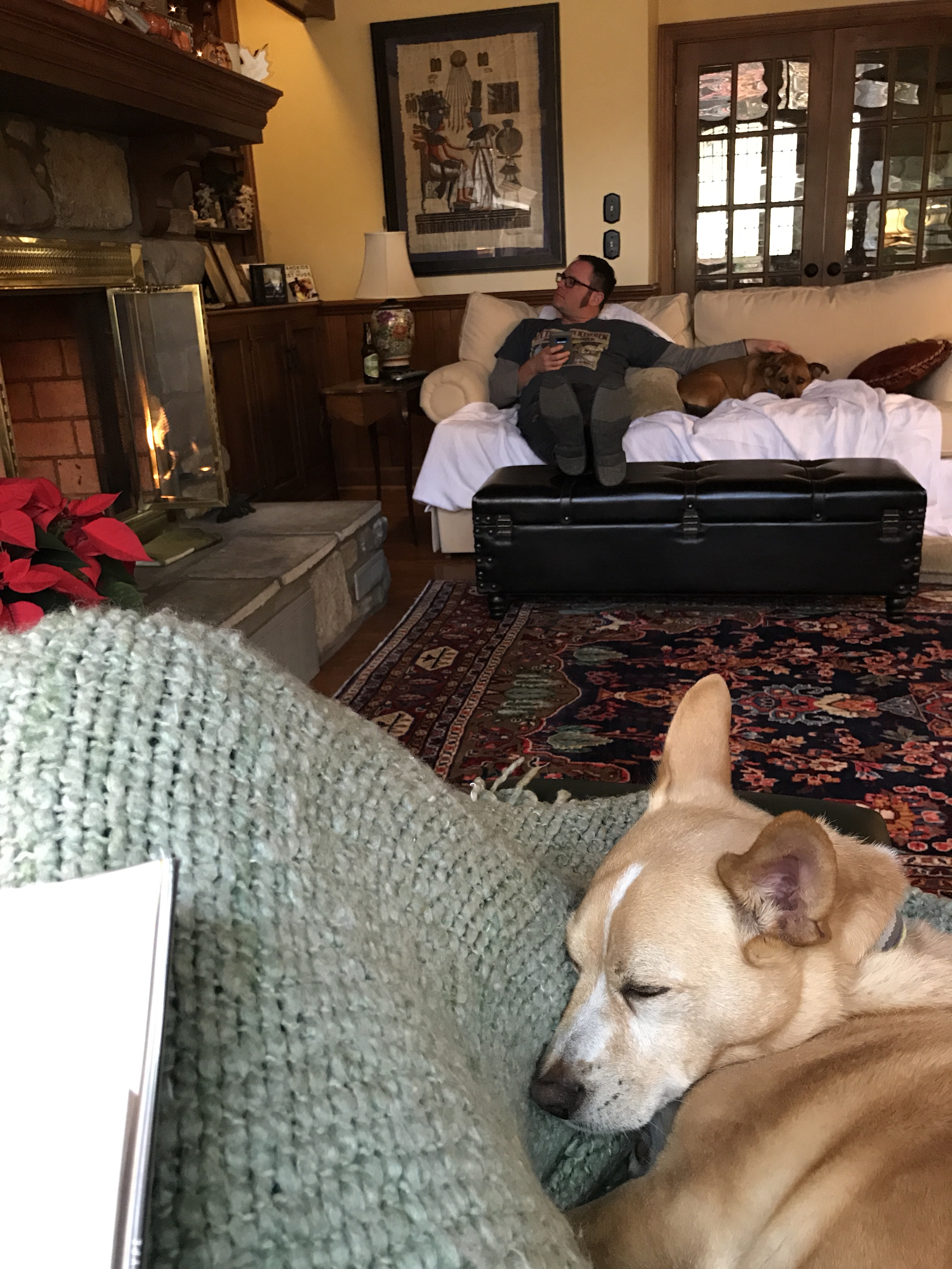 A day of easy cooking and reading by the fire with a glass of wine, cozy pups, and good company. Doesn’t get much better than that.