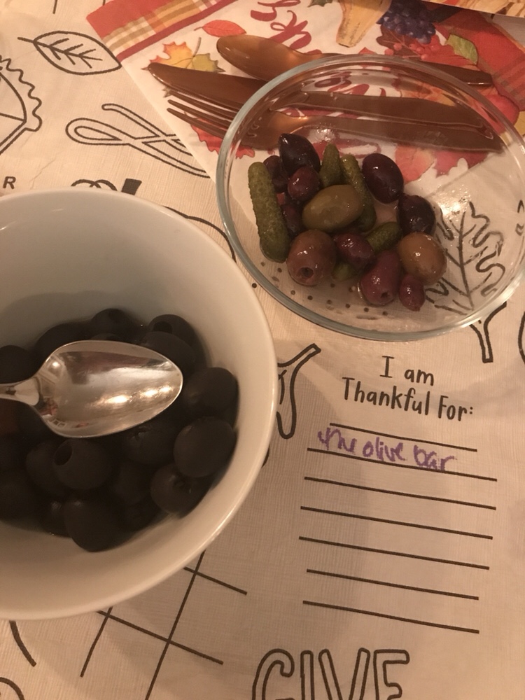 While this year’s menu included frozen apps and to-go sides, the easy, scaled-down affair was still dominated by laughter and good chats. And olives.