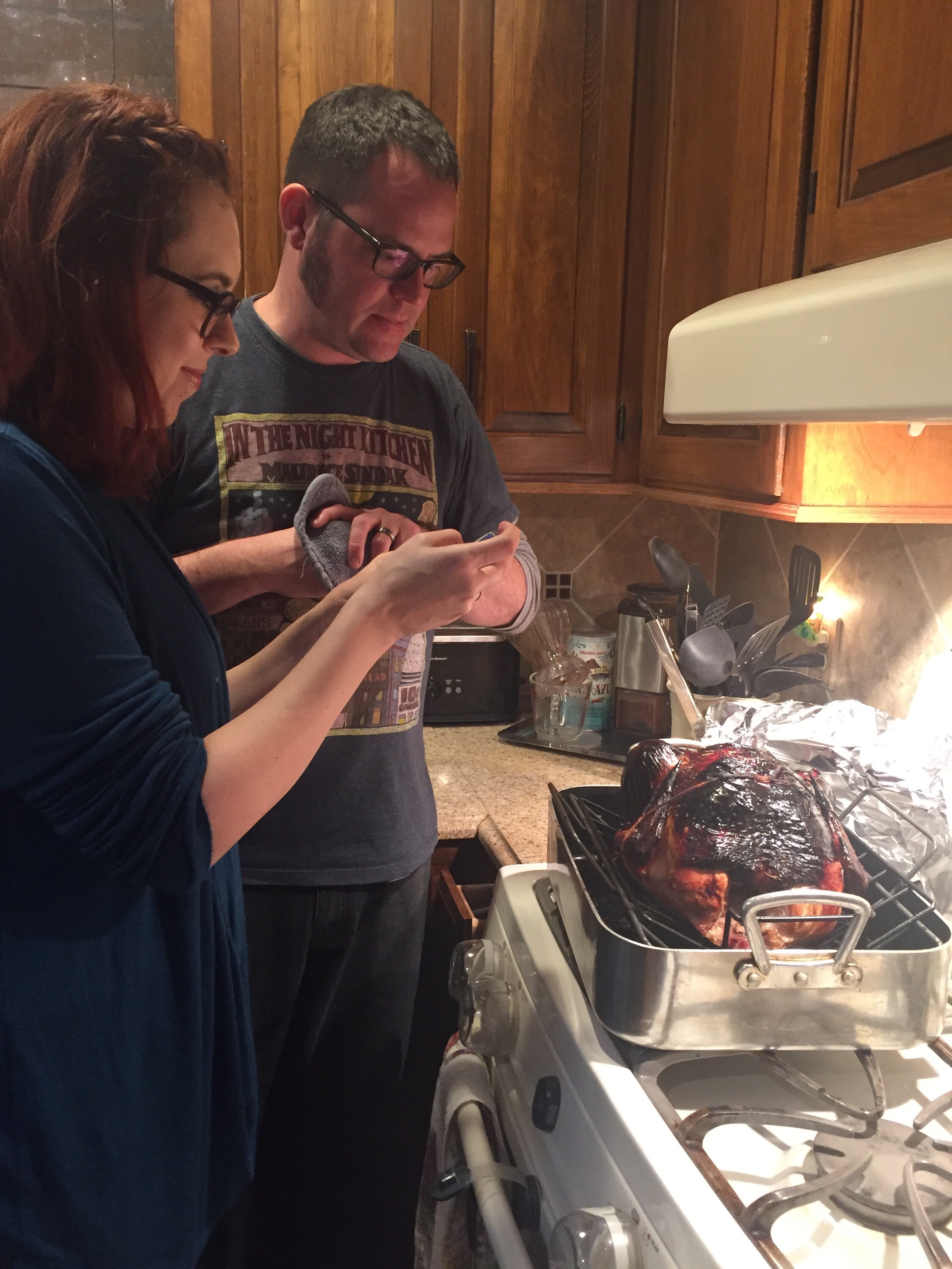 It felt very adult, productive, and responsible to travel to my in-laws with a turkey in a cooler in a brine. Even though the bags leaked. Whoops.