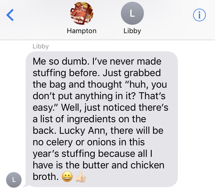 I don’t normally eat stuffing/dressing because onions and celery are the devil. But my sister-in-law forgot them, so she made some bread cube/butter/chicken broth goodness that went really well with my bourbon rosemary gravy — I mean, buttery carbs go well with everything (;