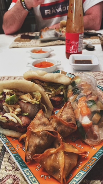 Sun 2/6: char sui dim sum. With all the pork leftover from Tuesday, we decided to try some new things. I have been wanting to try to make bao buns for a while — even though I am NOT a baker. We used this recipe and have some ideas to improve for next time [not the recipe’s fault, ours]. Also, there is no good reason why we haven’t used wonton wrappers yet. They are so versatile and handy. SO, clockwise from the bottom —