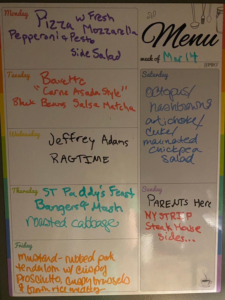 Welp, between tech for RAGTIME and Hampton going back into rehearsals for his COVID- and ice-delayed show, dinners this week were much more on the “get it done” side.