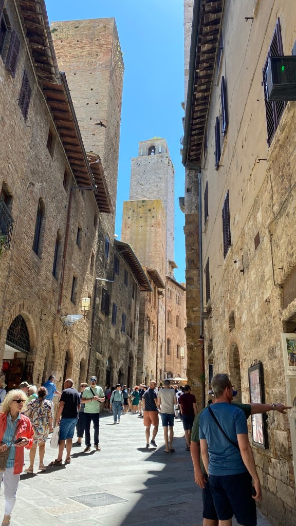 The next day we headed out to see some of the other small, walled Tuscan towns including Monteriggioni and Volterra. Hampton especially wanted to see San Gimignano and Adam was able to find us a trip there that fit our schedule and didn’t require renting a car. Perhaps one day we will be that adventurous but given the state of parking, probably not. Yay for other people doing the work! This tour group happened to have three couples — and one of the others was from Fuquay-Varina, just outside Raleigh. What a small world.