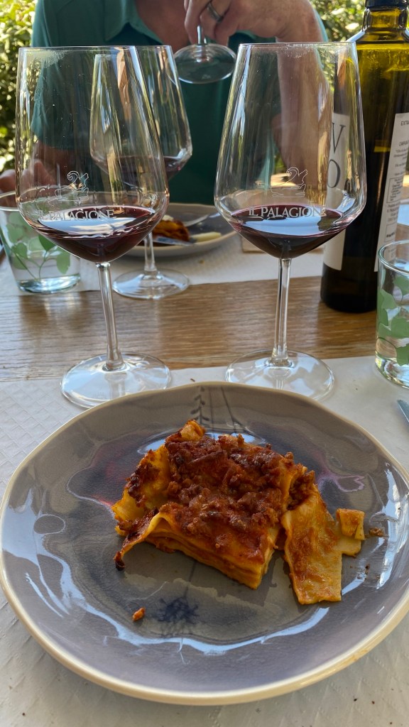 From there, it was onto a lunch and a tour at Il Palagione. The tour info just said something about a “rustic lunch at a Tuscan farm” and nothing about a winery, so we were super excited. One and a half of the other couples were teetotalers, and the fourth person preferred sweet (read, NC) wine, so it almost felt like we had a private visit. The Australian woman who didn’t drink said she finally understood why some people like wine given the conversations Hampton was having with our driver — who used to be a winemaker himself — and the owner. And we had the best lasagna I have probably ever eaten, not a visible or overly aromatic onion or chunky tomato in sight!