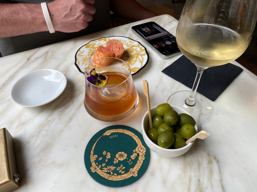 Our first full day there, we wanted to find things in the city we hadn’t done ten years earlier. First up was a market, where Hampton finally got a new wallet — his one shopping goal of the trip. Besides wine. Then we went looking for the Gucci Gardens, a museum about the famous designer. On our way, Hampton realized there was a cocktail bar (I hadn’t mentioned it), and he insisted we stop and it was a good idea. Although he hasn’t chilled my wine glasses since we got home. Rude.