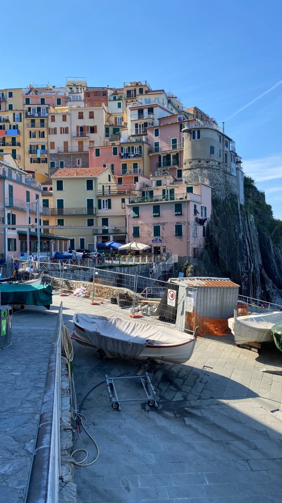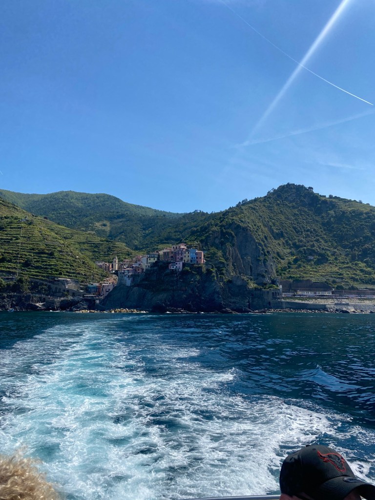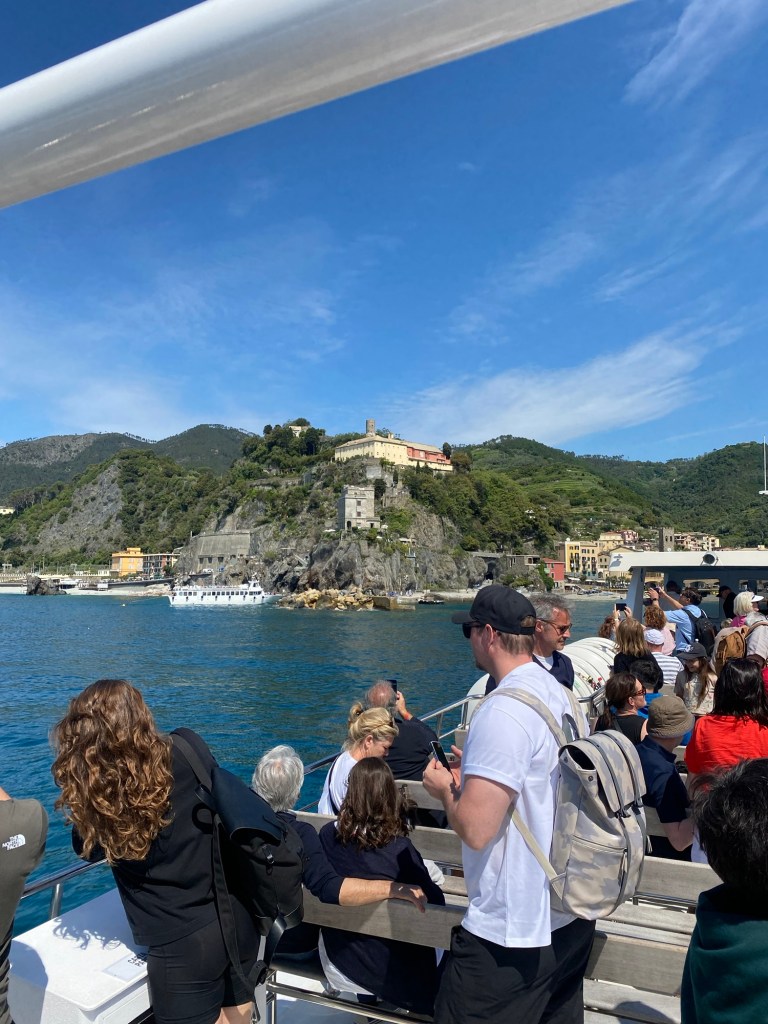 The next day, we headed out with a tour to Cinque Terre, five cities sprinkled along the northeastern coastline. It’s as gorgeous as all the photos make it seem, even my poorly composed and un-accounting for light levels iPhone pics. We only spent a short time in each stop and got to see some of the towns only from the water. Our tour recommended that we skip the touristy waterfront restaurants at our last stop to get a takeaway and find our own seats, but we were barely there and after climbing yet another tower, being waited on sounded lovely. Next time! Because we definitely want to go back and have more time to explore more, as well as taking a smaller boat trip instead of a large ferry.