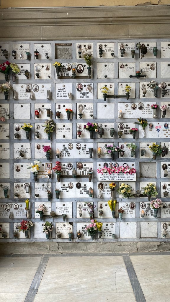 We were the only folks exploring the monastery that day, which was very quiet and a little surreal. Heading back down into the town, we stumbled upon the modern cemetery. We ended up spending quite a bit of time in there, enthralled by the walls of names because so many of them had photos and trinkets to go along with them. It was fascinating to see people who lived from the late 1800s through the late 1970s and to think about how much they would have seen, from the invention of flight to the world wars — to disco! Also, wives who outlived their husbands by decades and why did some families choose to memorialize their loved ones with photos of them in their youth versus ones from later in their life. It was a powerful reminder of just how many stories exist in this world and an emotional moment we were not expecting to have.