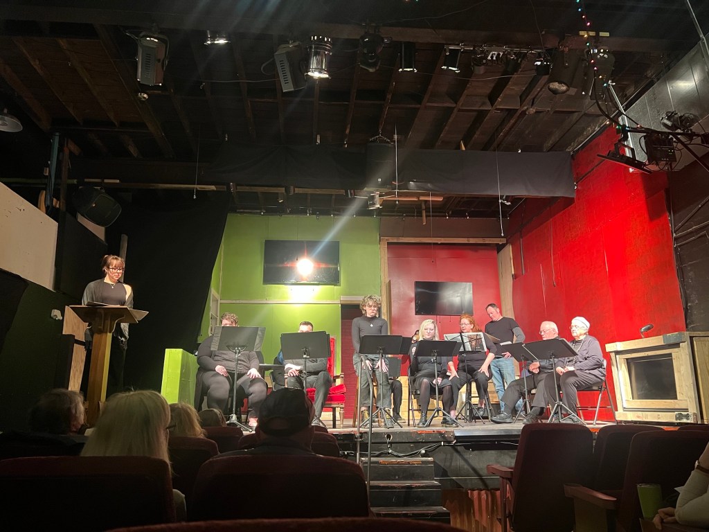 🎭: Ok, technically, this was last week, but since I didn’t do one of these then bc Vietnam, last Sunday, five days after getting back into the country, Hampton and I jumped into one of Camel City Playhouse’s “Spilled Ink” staged readings. We have both been annoyed when other people (or maybe just one particular person) didn’t bother to show up to rehearsals for such things but used traveling halfway around the world to justify it for ourselves. And also we really like the director (aka the stage manager who talked me into doing Othello last year) and she trusts us. Hampton had three small parts and I read the stage directions — and apparently my Hedwig and murder mystery director and his bff who staged managed his wedding (that I officiated and missed writing about) were very impressed with how I stood the whole time and did so without distractingly moving around which I may need to put on my résumé: convincing Serious Voice and Good Stamina. I have always thought I might want to be one of those performance art buskers who paints themselves metallically and pretends to be a statue.