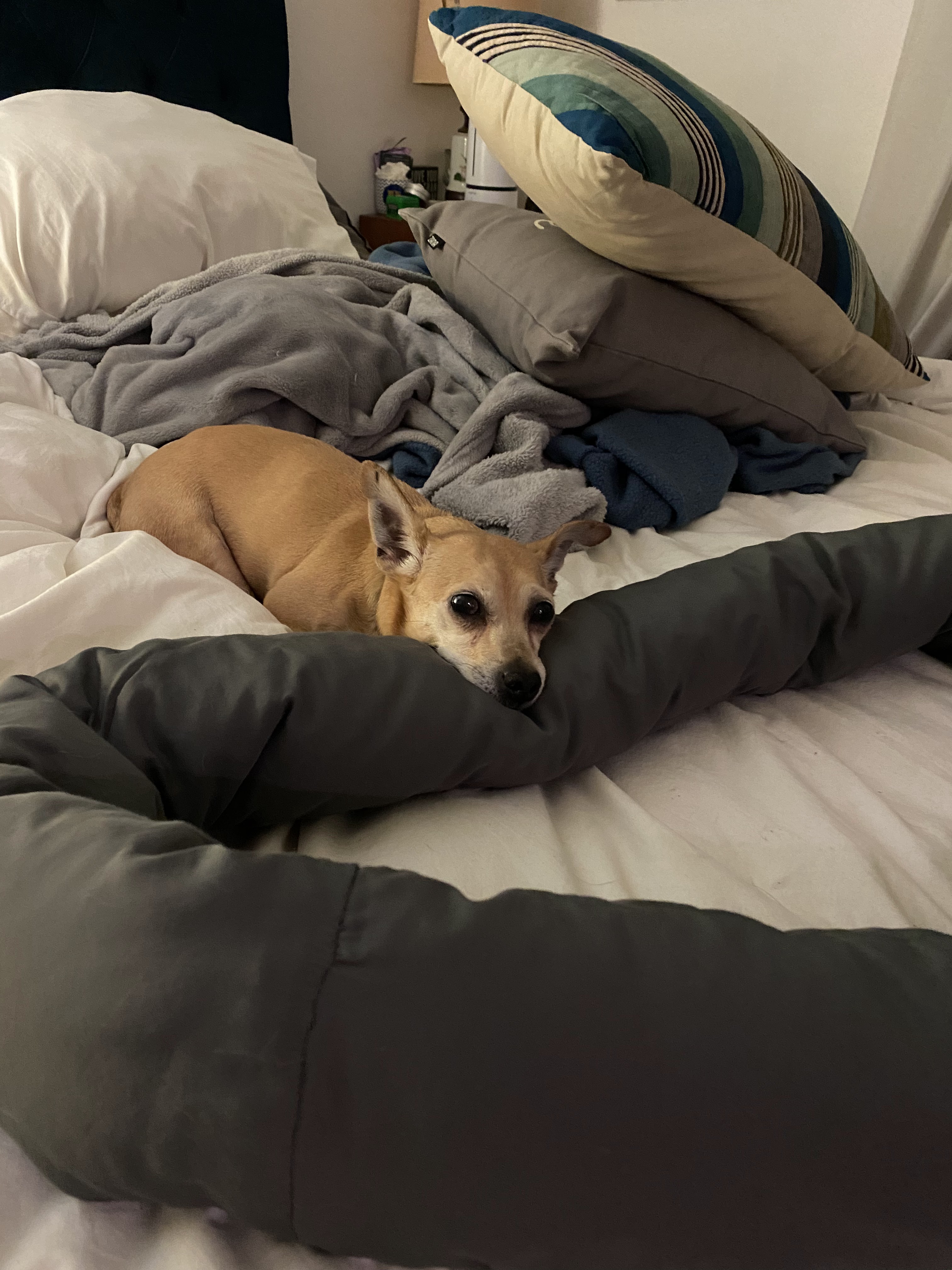 🐶: Raspberry, who is every stereotype of rescue chihuahua ever, ten pounds of need and rage, had her yearly checkup and…. didn’t bark at anyone? Human, canine, or feline? I wasn’t there, but Hampton swears it is true.