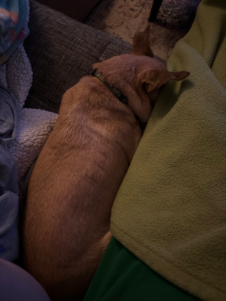 🐶: I bathed all three dogs by myself which is definitely noteworthy. Libby hates baths the most but stayed snugged up to me the rest of the afternoon while I read and Raz angrily defended her spot on the couch for a bit but then tucked up next to the warm George since all the blankets then also got a wash.