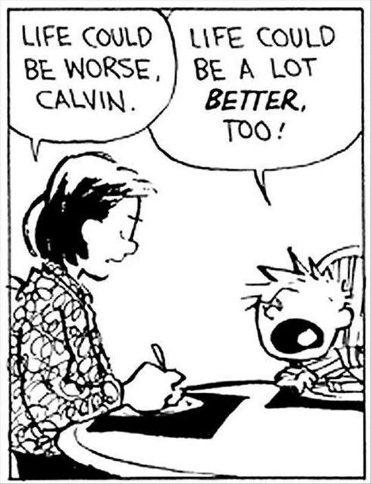 I was the same age as Calvin when he premiered, and ten years later, by the time of that last printed adventure off on the sled, my high school Latin teacher was convinced that I was the female version. My name in class was Zoe, so she even called me Zoe Calvina (“Zoh-ay Cal-weena”,ifyky). While I was much perkier and extroverted in my youth, let’s face it, I was probably much more rule follower Susie Derkins — piano lessons and all. Although, while I behaved in classes and questioned adults (out loud) a lot less, I still have an out of control imagination and enjoy a good rage about the injustices of life. Mainly the injustices that I have to do any sort of work and that the people in charge appear to have no idea what they’re doing, but I digress.