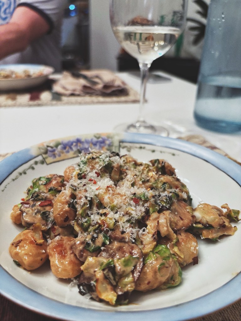 Sun – roasted delicata squash stuffed with Italian sausage, kale, mushrooms, golden raisins, pine nuts, mimolette, and goodness knows what else. Ripped off so many recipes, I can’t share any of them.