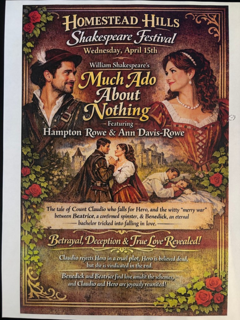 The same day the official swap night posted, my actual husband and participated in a retirement community’s Shakespeare festival, reading scenes from Much Ado About Nothing.
