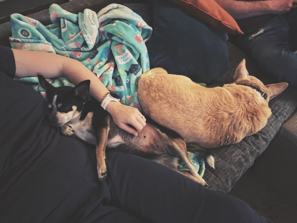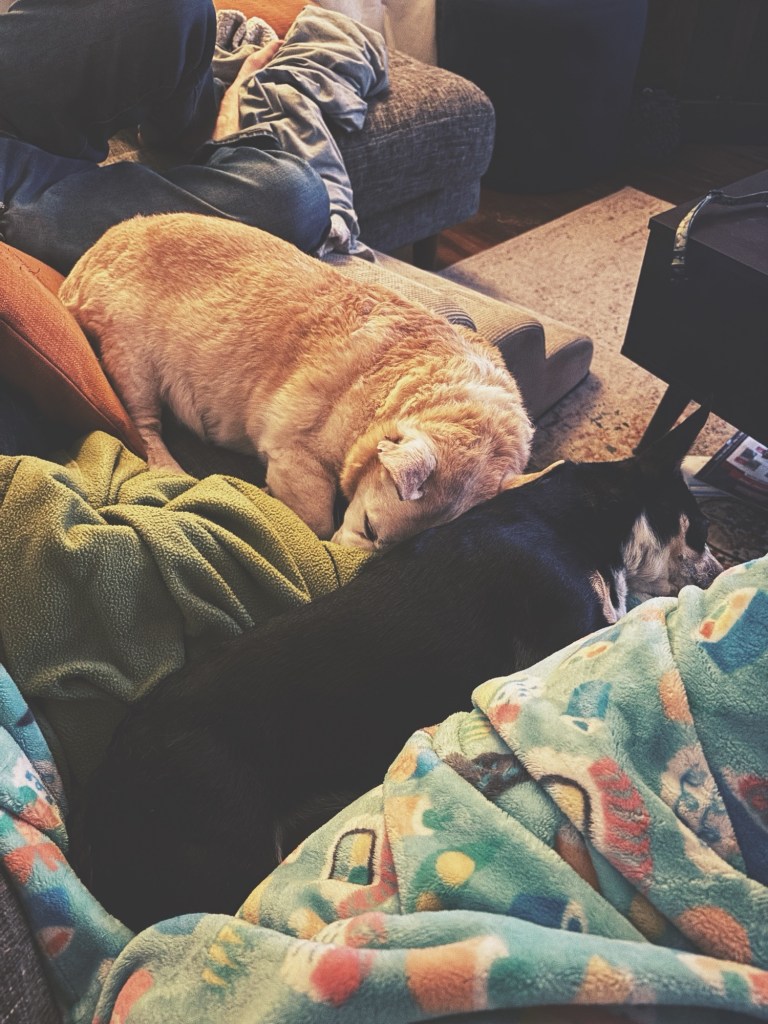 🐶: These were two separate nights. Pack life, best life for these two. (Raspberry likes to put herself to bed and call dibs as if she’s not the smallest of all of us.)